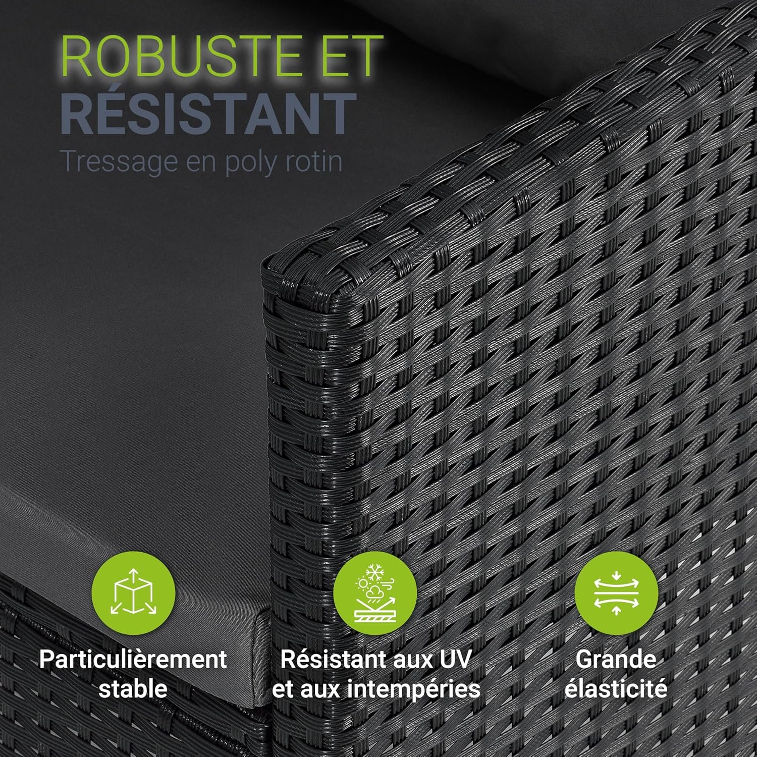 - Matériaux : polyrotin tressé + structure acier thermolaqué