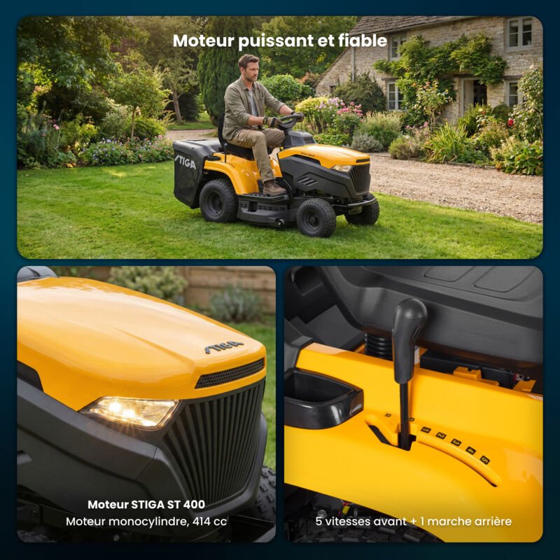Offrez à votre jardin un entretien rapide, efficace et sans effort avec la tondeuse autoportée STIGA Estate 384 M. Conçue pour les surfaces moyennes à grandes, elle allie puissance, fiabilité et confort de conduite, pour une tonte toujours nette et homogène.